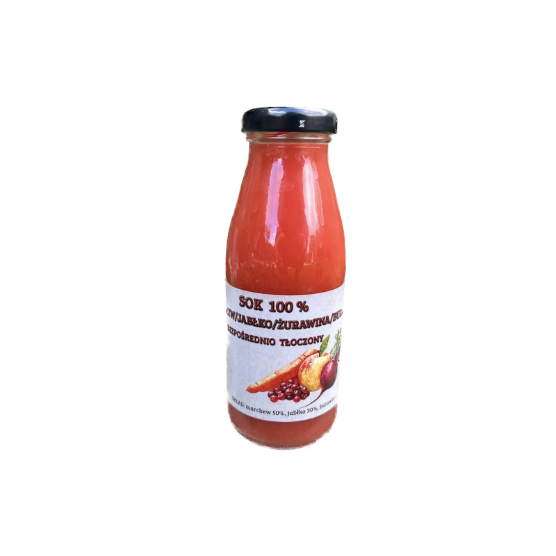 Sok z Marchewki, Jabłka, Żurawiny i Buraka – 100% naturalny, tłoczony na zimno